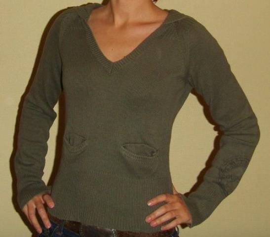 Chaki spalvos ONLY firmos megztinis su kapišonu ir dviem kišenėlėmis priekyje.