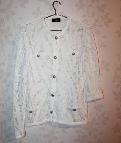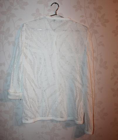 Itališkas megztukas. Sidabro spalvos sagos. Visiškai baltas, nuotraukoje meta ant drabužio šešėlius.