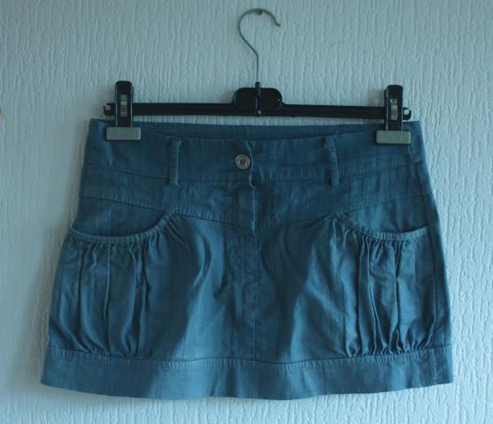 Mėlynas trumpas sijonas