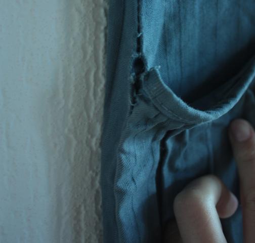 Mėlynas sijonas, su mažu defektu, kurį lengvai galima susiūt.