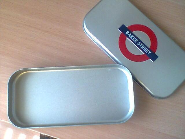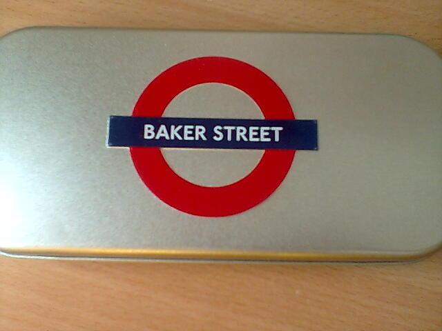 Iš Londono atvežta dėžutė nuo saldainių. 'Underground' tipo ;D Užrašas: Baker street.