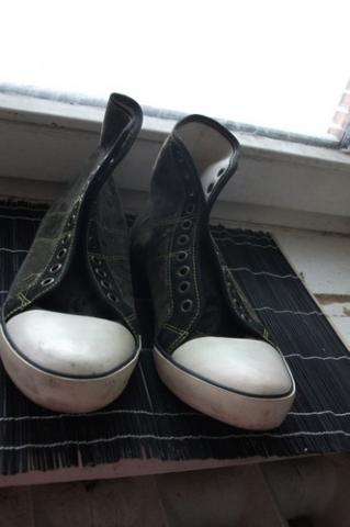 pirkau, kai paauglė buvau, tad dydis mažokas 36, mažai nešiotos, raištelius mama kažkur kitur panaudojo, tad mainau be raištelių, šiaip be defektų