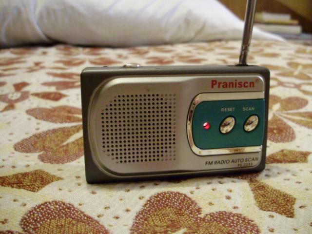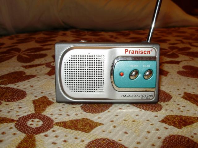 mažas radijo imtuvas, turintis lemputę, galima prijungti ausines.