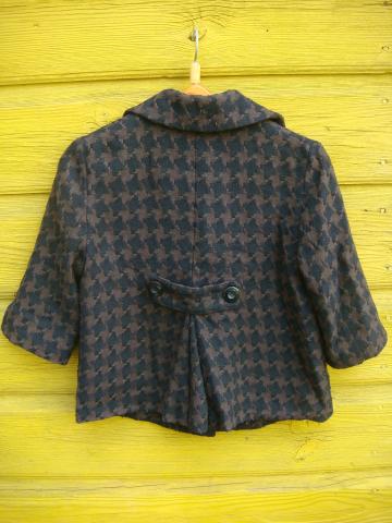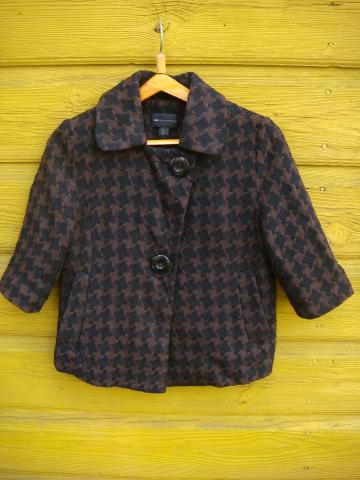 Šiltas, patogus švarkelis, klasikinis elegantiškas, dvejos kišenės, trys sagos. Kostiuminio tipo, bet tinka prie visko (nuo sijonų, suknelių iki džinsų). Platėjantis.