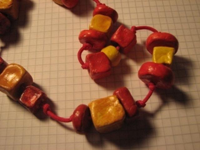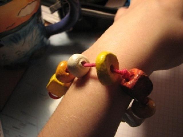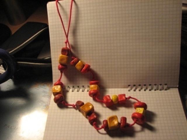 Nauji rankų darbo moliniai karoliai. Užsegimas universalus, kilpelė su karoliuku tvirtinasi prie kiekvieno karoliuko kaip patinka. Yra ir tokia pat apyrankė, bet mainau ir kartu, ir atskirai.