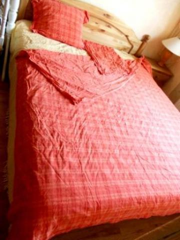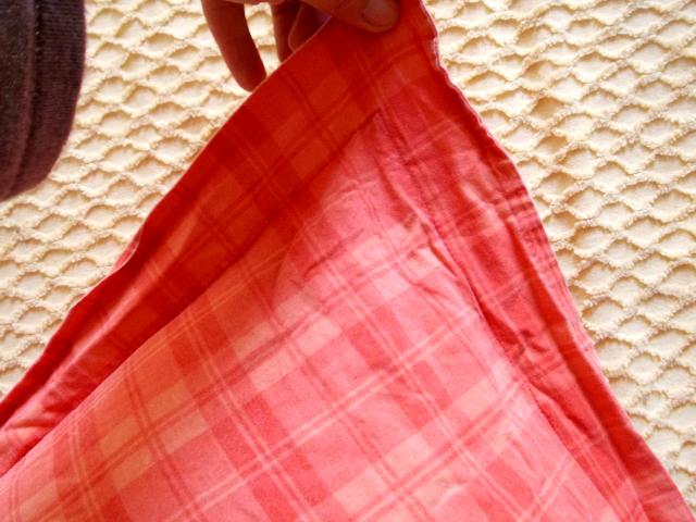 kaldros defektas vienas kamputis iplyses , yra dvi pagalves, medziaga kokybiska neiburbuliuojanti ar pan...medvilnine virsus stambiais langeliais apacia smulkiais langeliais