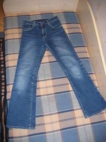 nesiaurėjantys, bet beveik neplatėjantys džinsai. Dydis ~38. Ūgiui ~1.68m. Šiek tiek panešioti, bet tikrai geros kokybės