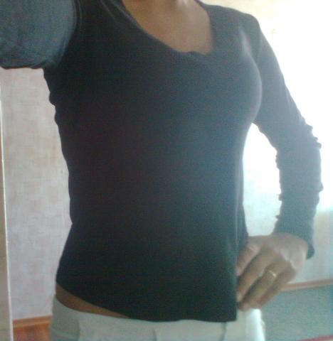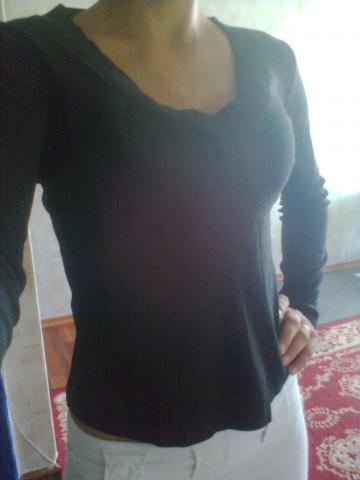 Moteriška juoda, trikotažinė palaidinė. Rankovių ilgis: 59 cm, bendras ilgis: 52 cm.