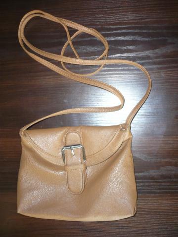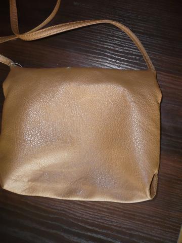 Nedidukė moteriška ruda rankinė per petį. Matmenys: 17x22cm, rankenos ilgis 158cm.