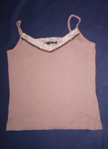 DOVANOJU prie mainymo :) Patogi šviesiai ruda moteriška palaidinė su petnešėlėmis. Maikutės viršus papuoštas karbatkėlėmis ir ruda zomšo juostele. 40 dydis.