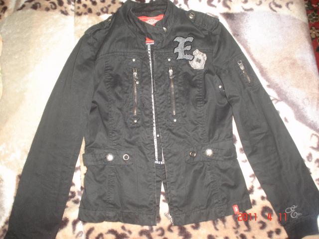 labai graus pavasarinis svarkelis,sodrei juodos spalvos,iliemenuotas,vienintelis nes pirkas ne lietuvoje,tik vienas mazytis defektas matosi paskutineje foto,susilanksciusi knopkyte ir neuzsisega,bet as ten niekad ir nesegdavau seip nebutina,o labai norint galima pataisyti..raso M bet sumazintas labiau tiktu S nesiojancioms.kaina:25lt