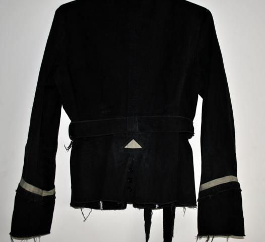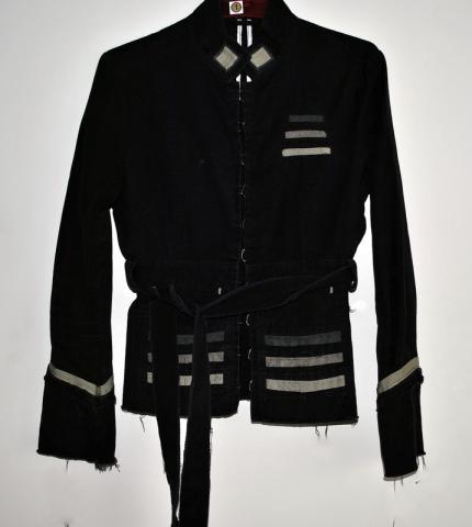 Moteriškas juodas, storesnio audinio švarkelis su dirželiu.