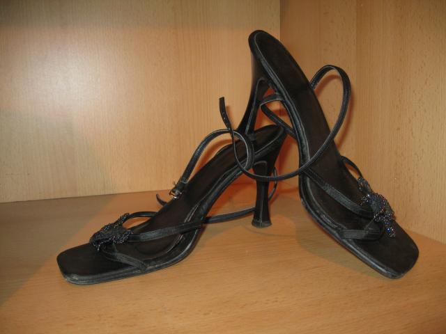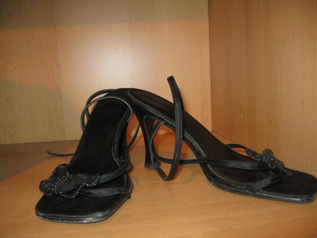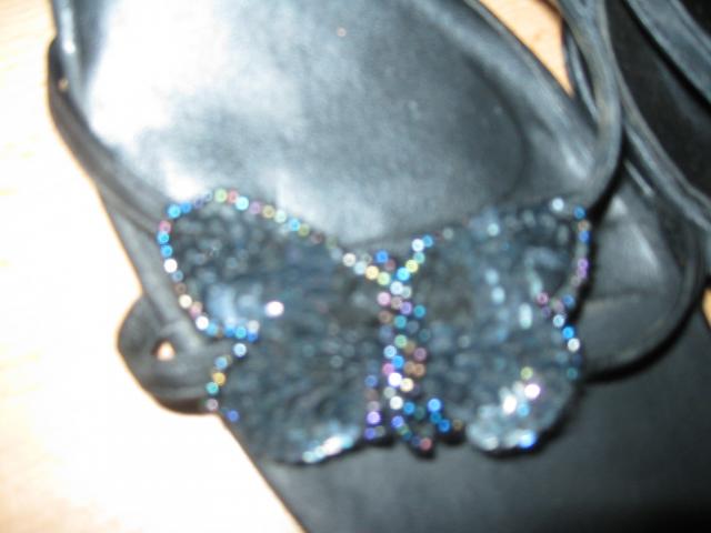 Juodos basutės su dirželiais, papuoštos blizgančiu drugeliu. Būklė - labai gera, be defektų