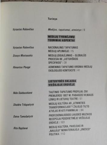 2011m. knygoje „Nacionalinis tapatumas medijų kultūroje“ tiriamas ne tik kaip tam tikra nacionalinio ir kitokių tapatumų sąveika su medijomis, ne tik išryškinami bendri medijuoto žmogaus gyvenimo aspektai, aptariamos su atmintimi susijusių medijų menų problemos, bet ir nužymimi nauji tyrinėjimų laukai. Vienas esminių klausimų – kaip medijos veikia nacionalinį ir kitokius tapatumus ir kaip jas būtų galima pasitelkti nacionaliniam, taip pat kultūriniam tapatumui stiprinti ir skleisti europinėje kultūros erdvė