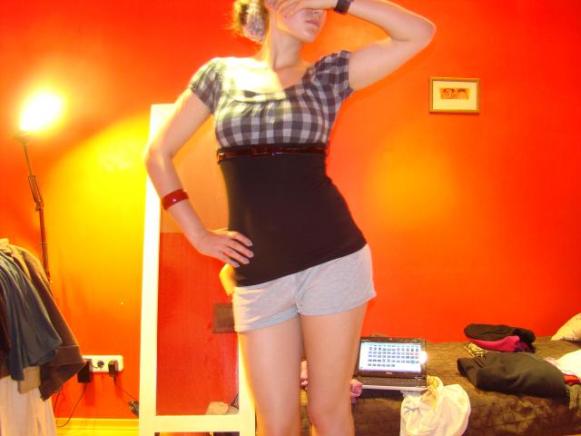 Visiskai nauja palaidinuke is Paryziaus , nei kart nenesiota. PIlku spalvu akcentai dera sioje palaidineje,languota virsutine dalis paryskina krutine, o juoda lengvai krentancios medziagos apacia pabrezia liekna liemeni. Pirktaa orginalioje firmineje parduotuveje 'Clockhouse'.