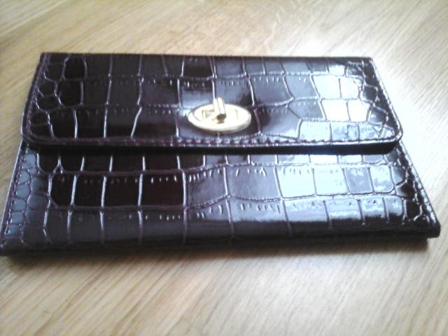 19x12x13 cm, PVC, burgundiško vyno spalvos, su užsukama sagtele, 1 skyrelis banknotams, 1 užrauktuku užsegamas, 6 skyreliai kortelėms, kišenėlė nuotraukai.