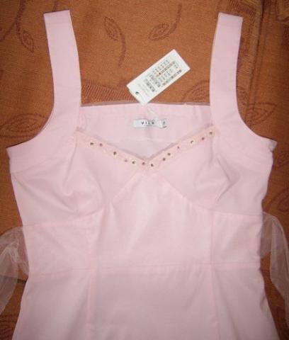 NAUJA VILLA (!) suknelė. Pirkta užsienyje, su etikete. Nugaroje susiriša kaspinėlis. Priekyje prie krūtinės pasiuvinėta tokiais karoliukais (trečia nuotrauka). 175cm ūgio merginai suknelė iki žemės (matome antroje nuotraukoje). Dydį rašo M. Suknelė s