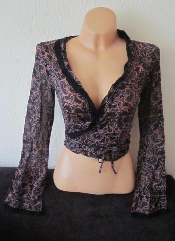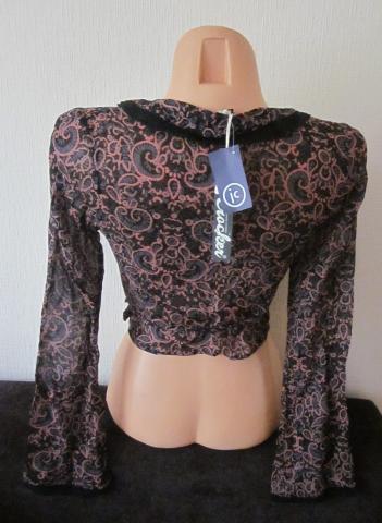 Naujas užrišamas megztukas/bolero. Raštuotas. S dydis, su etiketėmis. Rankovės ilgis nuo peties linijos 61 cm, nuo pažasties - 52 cm. Ilgis nugaroje 45 cm.