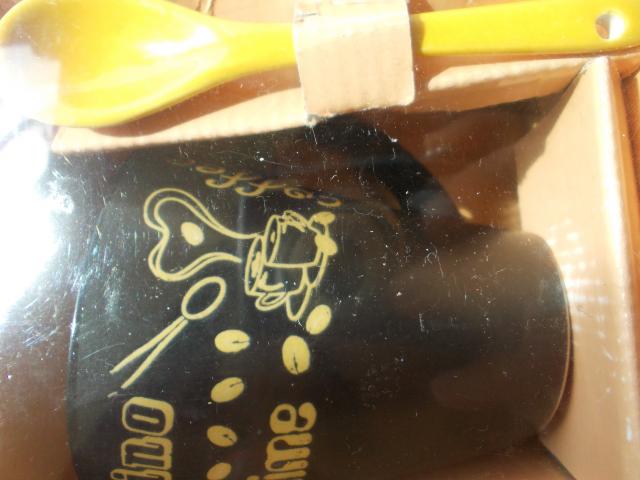 naujas kavos puodelis su šaukšteliu