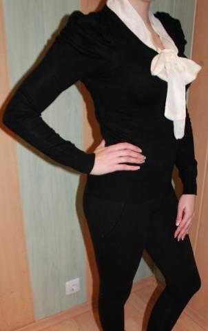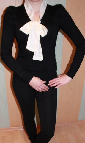 Labai puošnus, stilingas ir kartu klasikinis megztukas su kaspinu. Tiks ir prie sijono ir prie džinsų ar leginsų. Išmatavimai: ilgis 60 cm, krūtinė 37 cm, rankovė 61 cm.