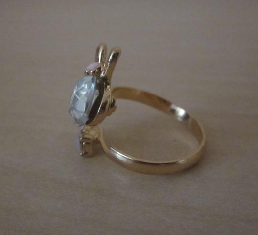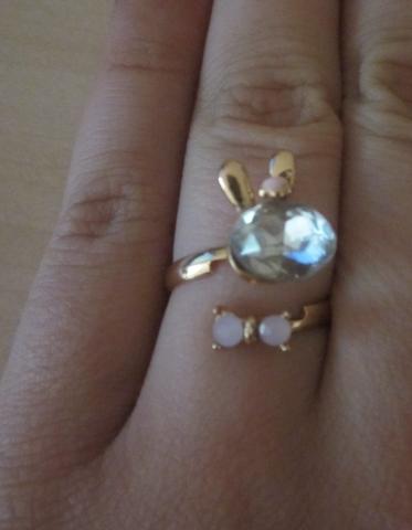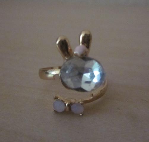Naujas žiedas - zuikutis, dydis reguliuojasi taip, kaip matosi nuotraukose - susispaudžia per priekį arba atsistumia. Be defektų, supakuotas.