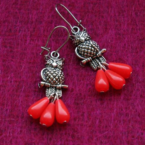 Nauji auskarai "Pelėdos" (su raudonais lašeliais)