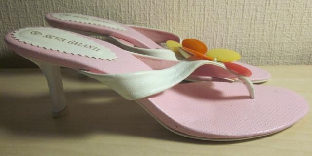Įsispiriamos baltai rožinės basutės per pirštą. Naujos, nenešiotos, nes man per mažos. Dydis - 40. Vidpadis 25,6cm.