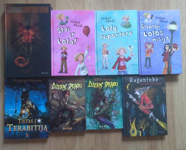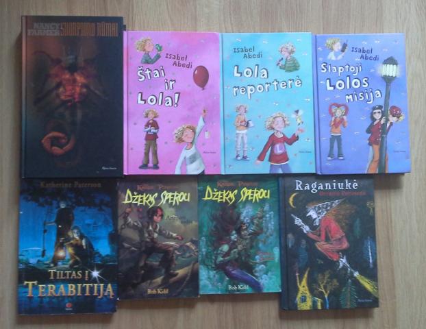 Naujos knygos, kai kurios skaitytos tik 1 kartą.Dėl kainos susitarsime :) + siuntimo išlaidos Skorpiono Rūmai; Štai ir Lola; Lola reporterė; Slaptoji Lolos misija; Tiltas į Terabitiją; Džekas Sperou Artėjanti audra; Džekas Sperou Sirenų giesmė; Raganiukė