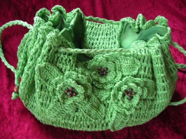 Visiškai nauja pinta - nerta rankinė, gražios žalios spalvos. Laaabai talpi. Pirkau, nes labai patiko, bet nieko žalio neturiu, tad tenka atsisveikinti, gal kažkam netik patiks, bet ir tiks:)