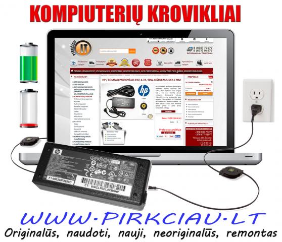 Nešiojamų kompiuterių pakrovėjai, įkrovikliai, pakrovikliai, maitinimo šaltiniai, blokai Kaina: 19 € Pristatymas: VISOJE LIETUVOJE. Daugiau informacijos: www.pirkciau.lt PAKROVĖJAI BEVEIK VISIEMS KOMPIUTERIŲ MODELIAMS. HP, ACER, ASUS, SONY, SAMSUNG, EMACHINES, APPLE, FUJITSU, LENOVO, TOSHIBA, GATEWAY, DELL Jei nežinote, kokio nešiojamo kompiuterio pakrovėjo Jums reikia, kreipkitės į mus tel. nr. 863977277, el. paštu: info@pirkciau.lt, rašykite per skype: rego-gps ar tiesiog atvykite pas mus: Vilni
