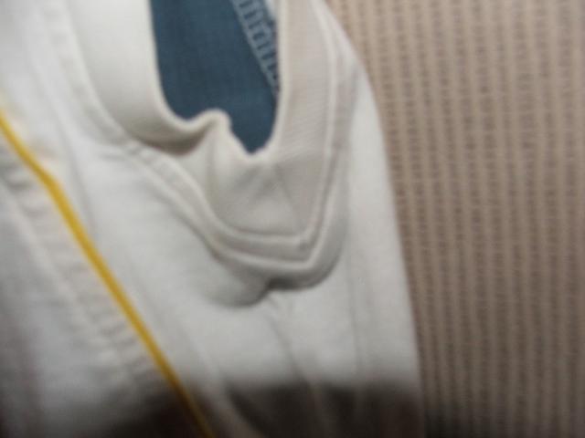 Defektas: 5 foto kairė pažąstis, kuri kiek prairusi ties siūle, daugiau nebesiardo.