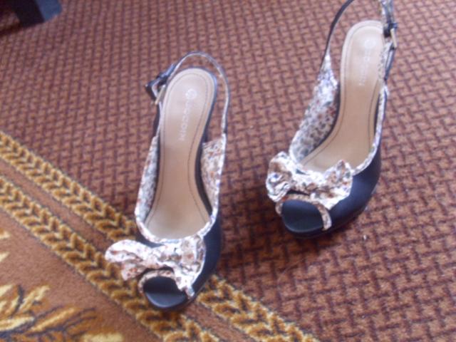 Nuostabūs juodi aukštakulniai su gėlytėm. Priekis ir kulnas atviri, priekyje yra bantukas. Tikrai labai gražūs.