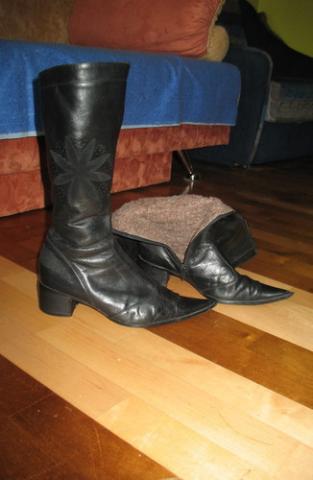 Odiniai žieminiai batai, viduje yra natūralus kailis(jis yra visur). Mokėta už juos apie 300lt, parduodame tikrai pigiai, dar kaina bus derinama.Spalva juoda, dar pagražinimas yra(matosi foto), smaili.Yra kulnas, dydis 39. Užtrauktukai tikrai abieju batų yra tvarkingi. Jei ka nors sudomins rašykit,klausit mielai atsakysiu :) Batai geros bukles