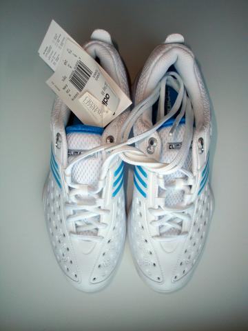 Nauji, su visomis etiketėmis Adidas teniso sportbačiai, 39 dydis. Pirkti specializuotoje sporto prekių parduotuvėje už 332 Lt. Itin geros kokybės, su mėlynomis detalėmis ir netgi pora tikrų Swarowskių. :)