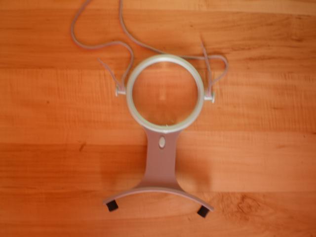 padidanams stiklas, kuri galima uzsikabinti ant kaklo, dedasi dvi baterijos ir sviecia lempa