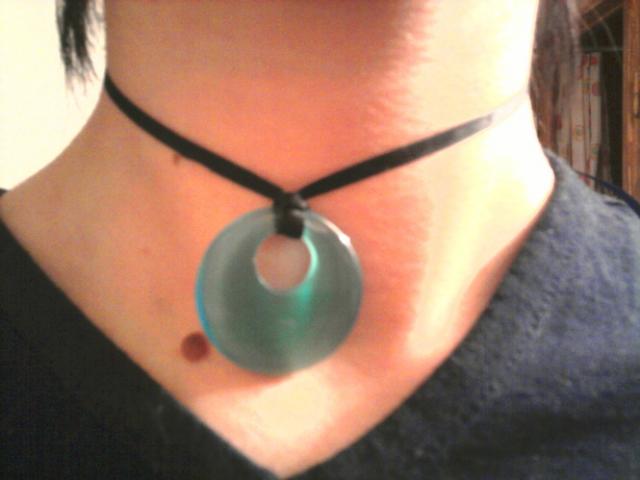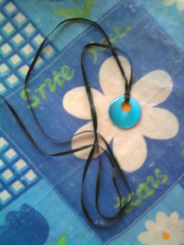 Labai idomus plastikas - menulio akmens imitacija. Juoda silkine juostele.