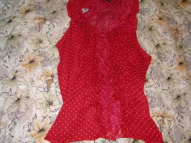 Raudona taškuota palaidinė be rankovių, M dydis, tai man per didelė.