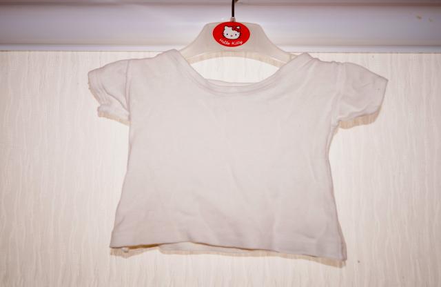 Medvilninė bliuskytė, dydžio nerašo, manau 3-6 mėn maždaug, žiūrėkite išmatavimus: ilgis 19 cm, tarp pažastyčių 24 cm.