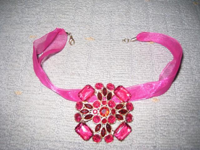 Naujas papuosalas prie pat kaklo, puosnus, ryskiai rozines spalvos