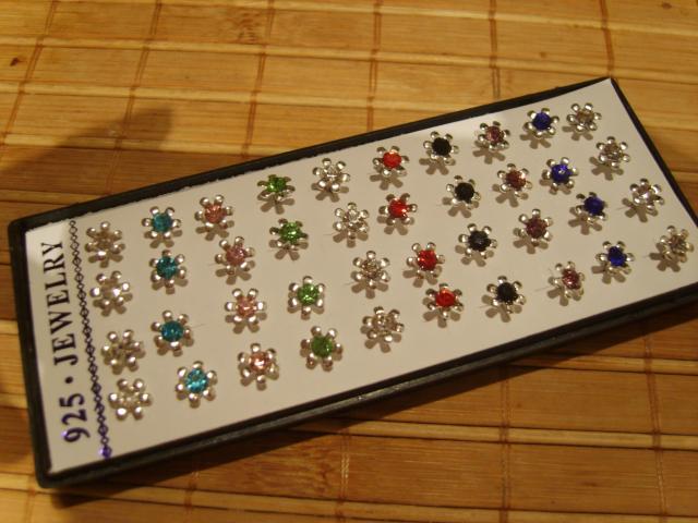 Auskariukų pora - 0.40 €. Galima nešioti po vieną į papildomas skylutes ausyse arba porą kaip pagrindinius. Pasidabruoti, su silikoniniais užsegimais. Labai ryškiai žėri. Visos galimos spalvos matosi nuotraukoje.