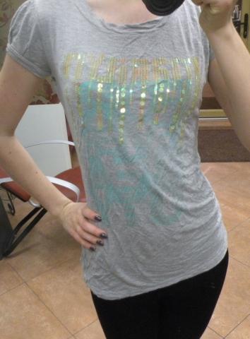 Bliuskutė su blizgučiais,jie nenukritę,geros būklės, plonos medžiagos,labai smagi. Tiktų laisvai XS,S,M dydžiams. Nuotraukoje ant S. Nuotraukoje neišlyginta.