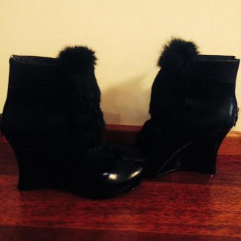 Viena karta nešioti. Dekoruoti naturaliu Triušio kailiu. Aukštis 10cm. Pirkti už 800lt. Firma "House of Harlow"