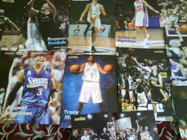 14 plakatu (nedideli) su krepsinio zvaigzdemis.