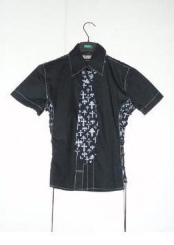 Visiškai nedėvėti alternatyvaus stiliaus marškinukai. Šonai suvarstomi, yra kaklaraštis, bet galima dėvėti ir be jo. Tinka xs ir s dydžiams.