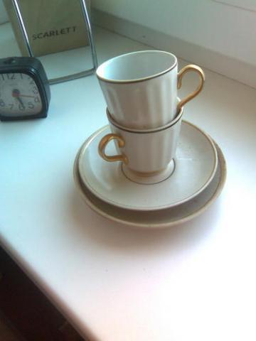 1975-1977 metų gamybos. Stovėjo nenaudoti. Su lėkštutėm. Paauksuoti, briaunoti, maži, baltarusių g-bos.6vnt.