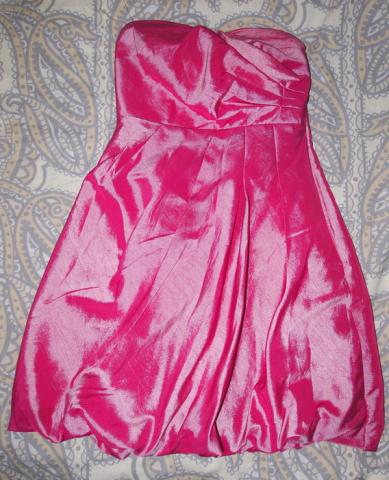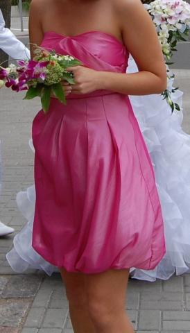 Sunknelė vilkėta vieną kartą. Nurodytas dydis ant suknelės 36/S , bet atitinka 38/M dydi.Spalva rožinė.Medžiaga slidi.Prie suknutės yra šleikutės.