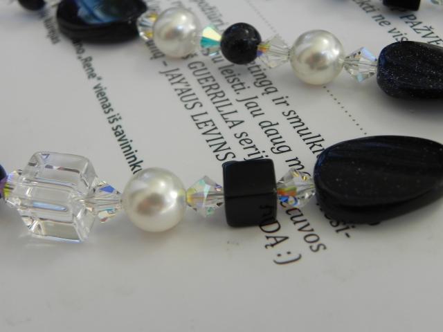 Prabangus vėrinys leis pasijausti karaliene ir trauks žvilgsnius, skatins žavėtis jo šeimininke! Kairo nakties akmuo, svarovskio kristalai, agatas; sidabro užsegimas, apie 40 cm ilgis. Pirk ir žavėk!