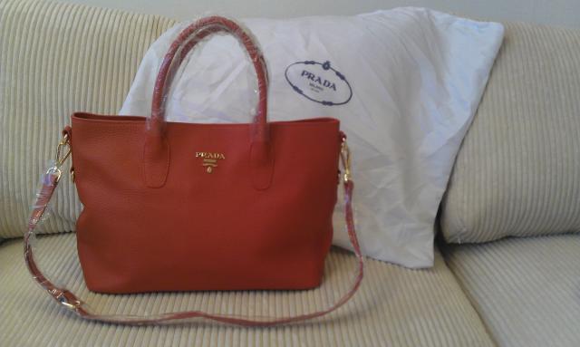 Nauja, raudona, odinė Prada rankinė, su ženklu išorėje, minkšta odelė, labai patogi, yra ilga rankena. Perkant daugiau nei vieną prekę galima kaineles galima biškį pakoreguoti