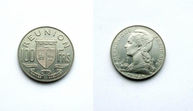 Prancūzijos kolonija Reunion 100 francs 1964 m