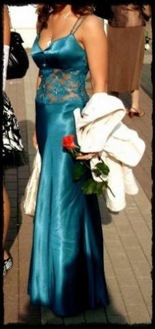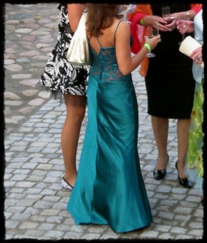 Viena karta deveta, ziauriai grazi progine suknele, juosmuo neriniuotas ir siuvinetas karoliukais, petnesos taip pat siuvinetos